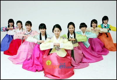 The pics of Sonyeoshidae and Bae Seul-gi in traditional hanbok wishing one and all a Happy 2008 are just lovely, aren’t they?